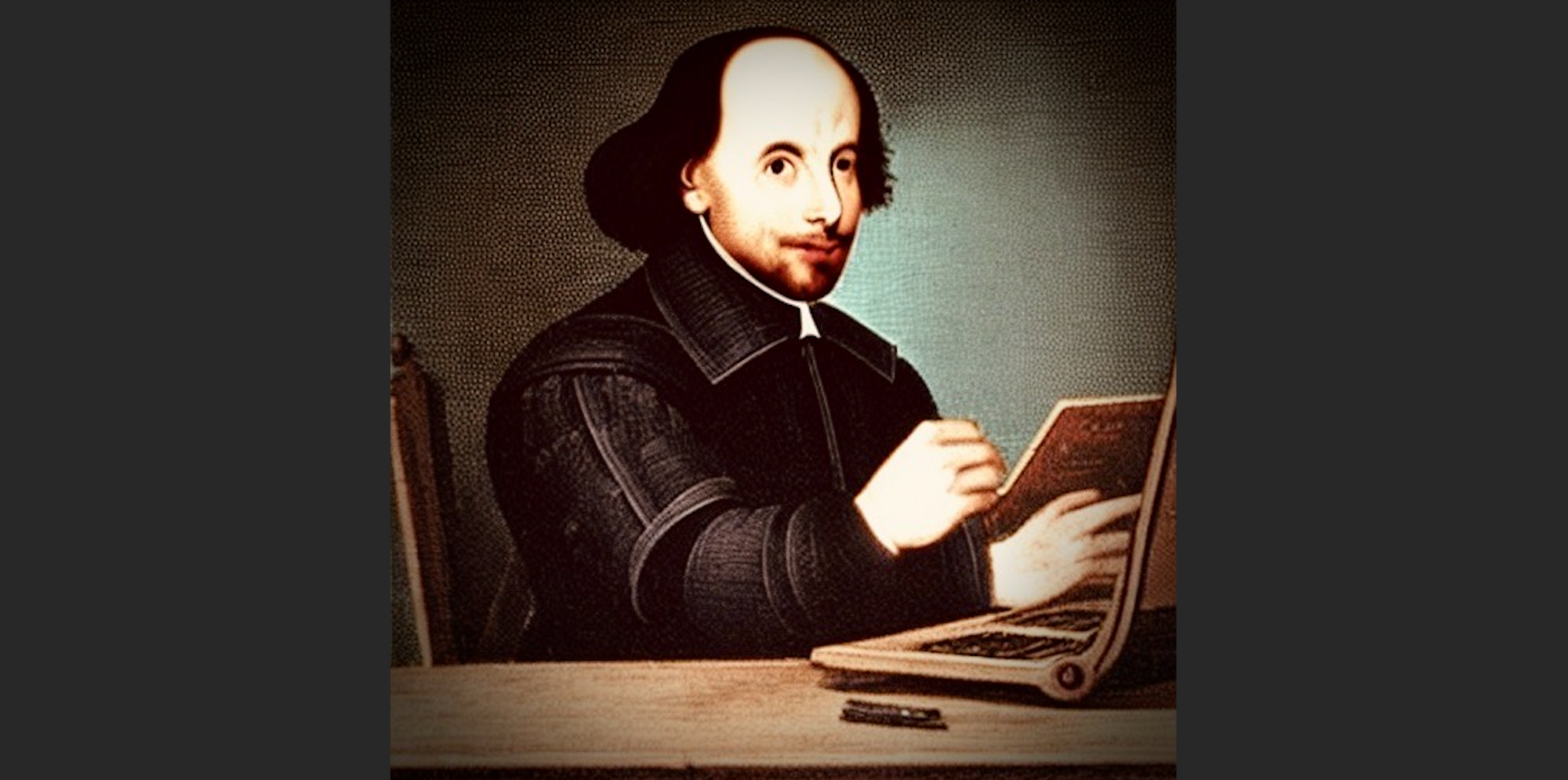 Photo credit to deepai.org (Yes, we used AI to generate the photo of Shakespeare writing an email.)